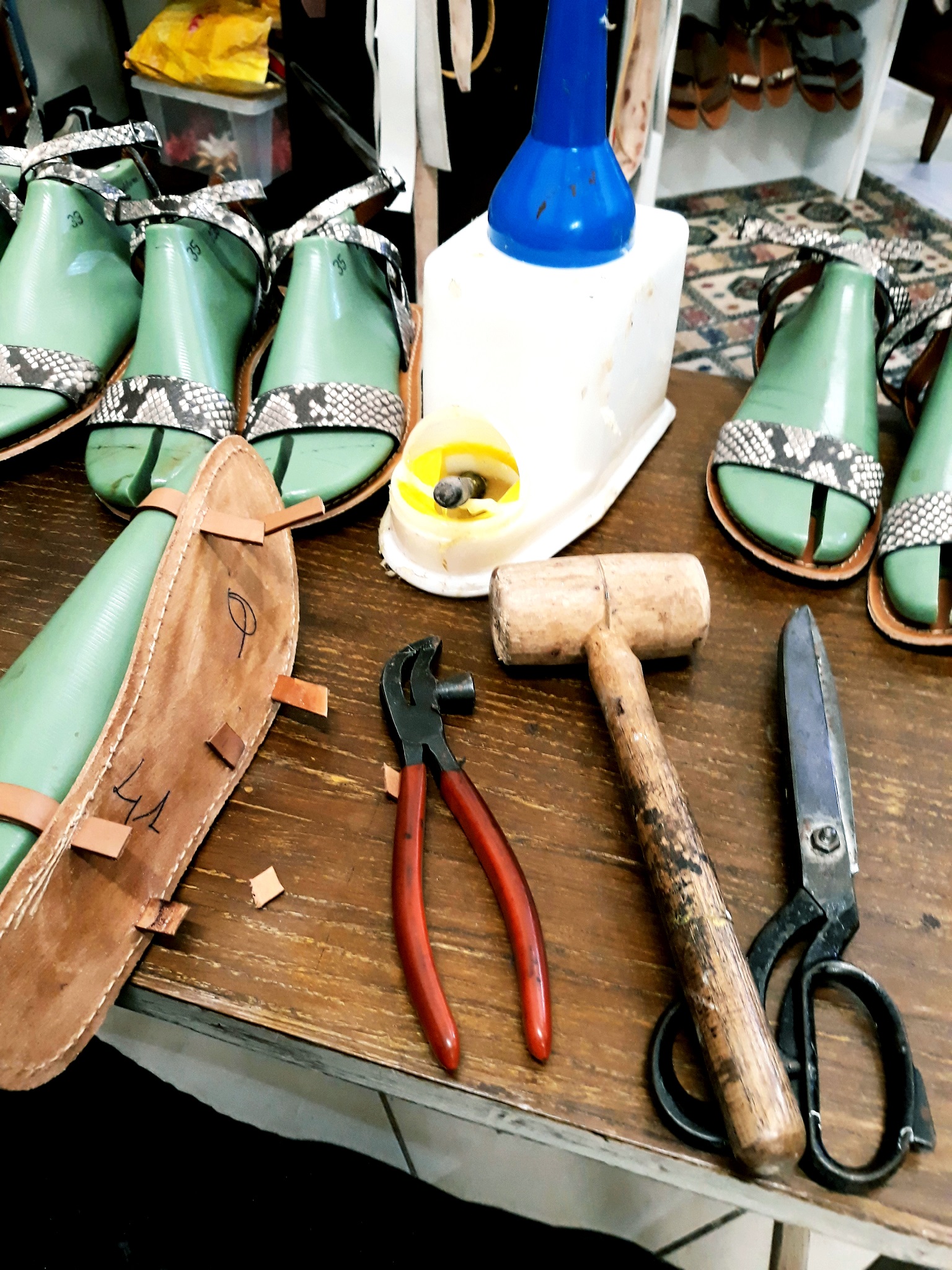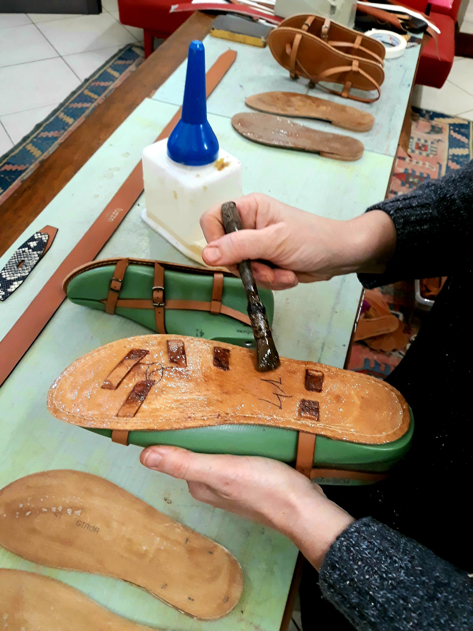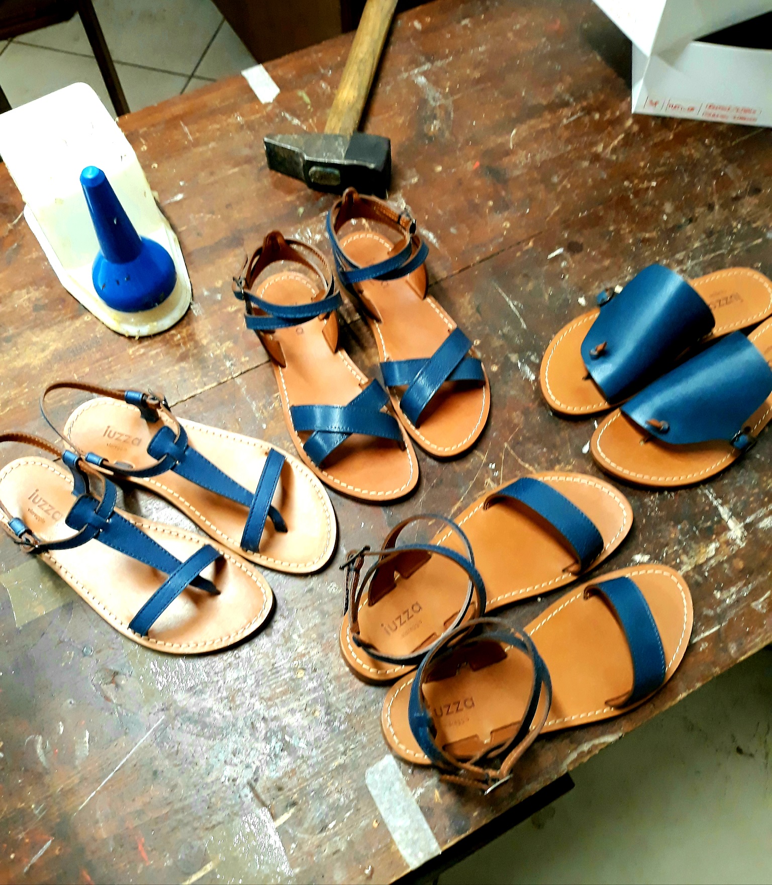 I am Alberto, son of a footwear model maker. Since 1992 I've been doing the same job as my father: I collaborate in the design of samples and industrialization of footwear for men and women with different Italian shoe factories, especially those based in Tuscany. I was born and raised among shoes, trying to meet the demands of my customers, being attentive to fashion trends. I have worked alongside established designers but also and above all alongside workers and artisans who can teach you the craft. After learning and "stealing" the secrets of the work, I want to make sandals that please me. I make them by hand, it's a small artisan production of very few pairs, together with my wife Giada, or "Iuzza", who' an artisan of another sector but with a passion for shoes. We started as a hobby and over time our passion led us to decide to open our own shop. Our sandals are simple, all strictly made with real-leather soles and insoles, upper and lining also made of genuine leather, hand-cut with a blade and characterized by details sewn by hand with needle and waxed thread - as well as our accessories, also strictly made with real, genuine leather. We like leather and natural materials, which can adapt to the foot of the wearer. We like handmade products that keep alive the trades of the past. We like Made in Italy.